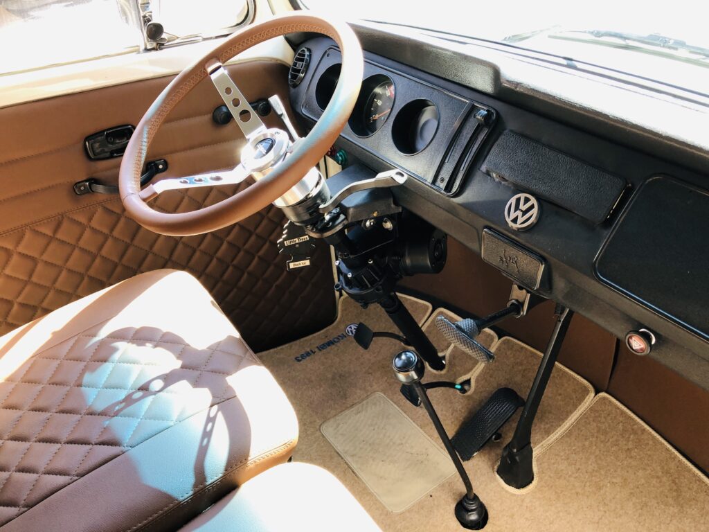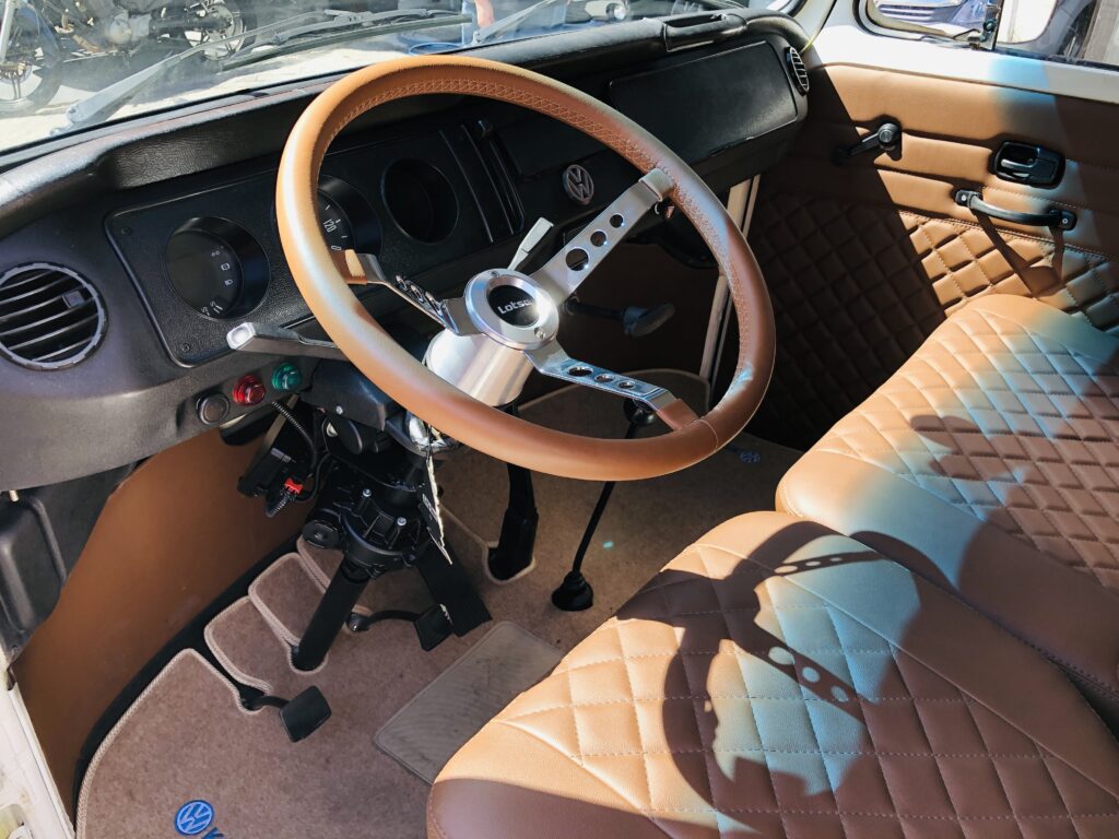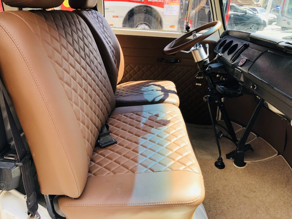 Direção Elétrica, Escada Estilo Califórnia, Escada E Bagageiro De Madeira, Estilo Antiga, Volante De Couro, E Estofados Novos Marrom.